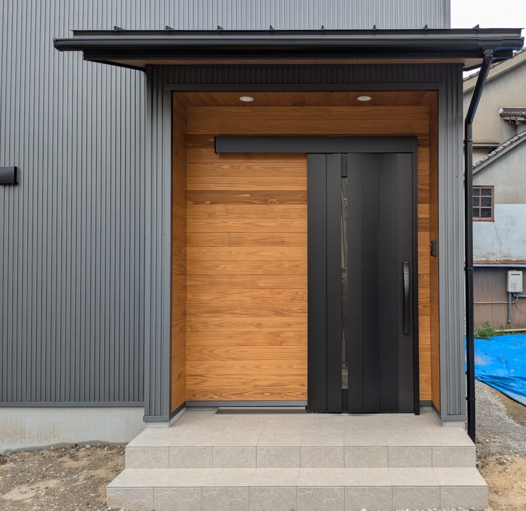ガルバの銀黒に無垢の杉板がとてもよく合ってます!